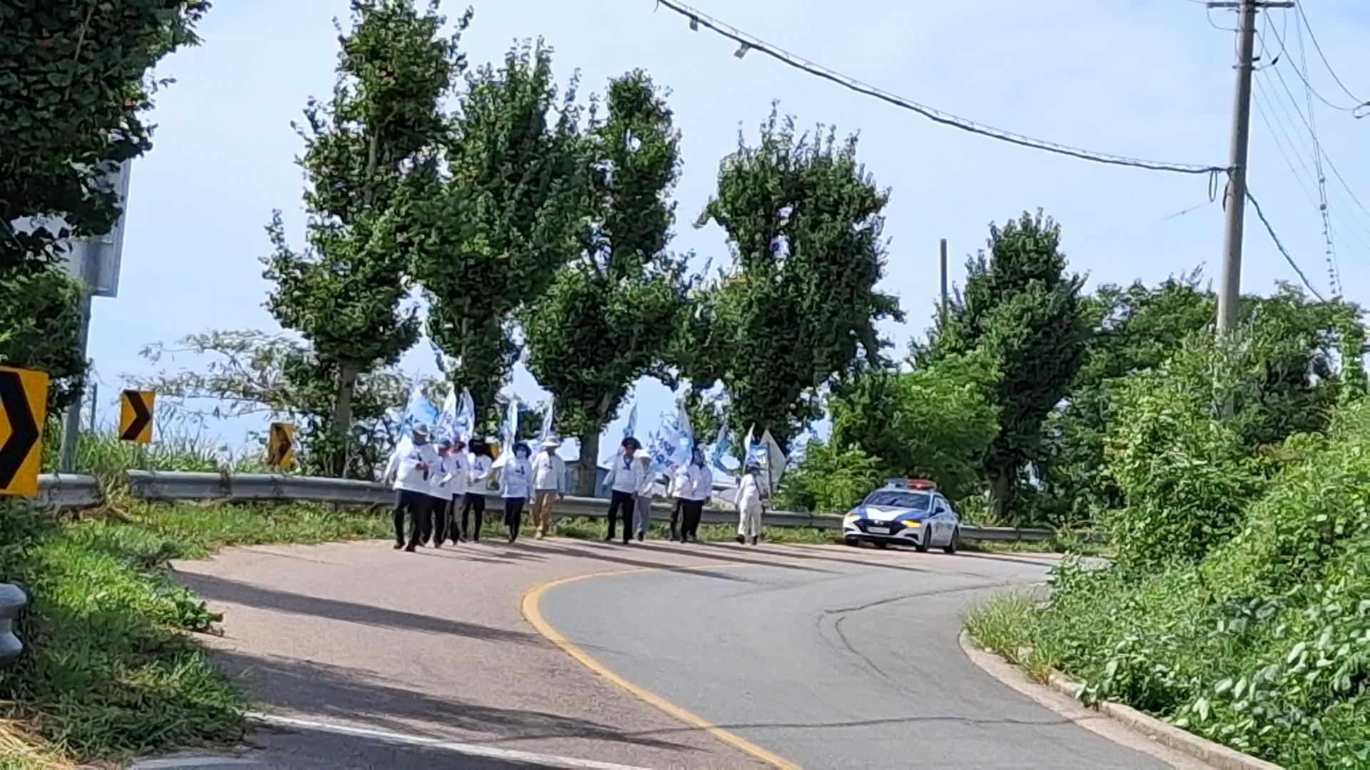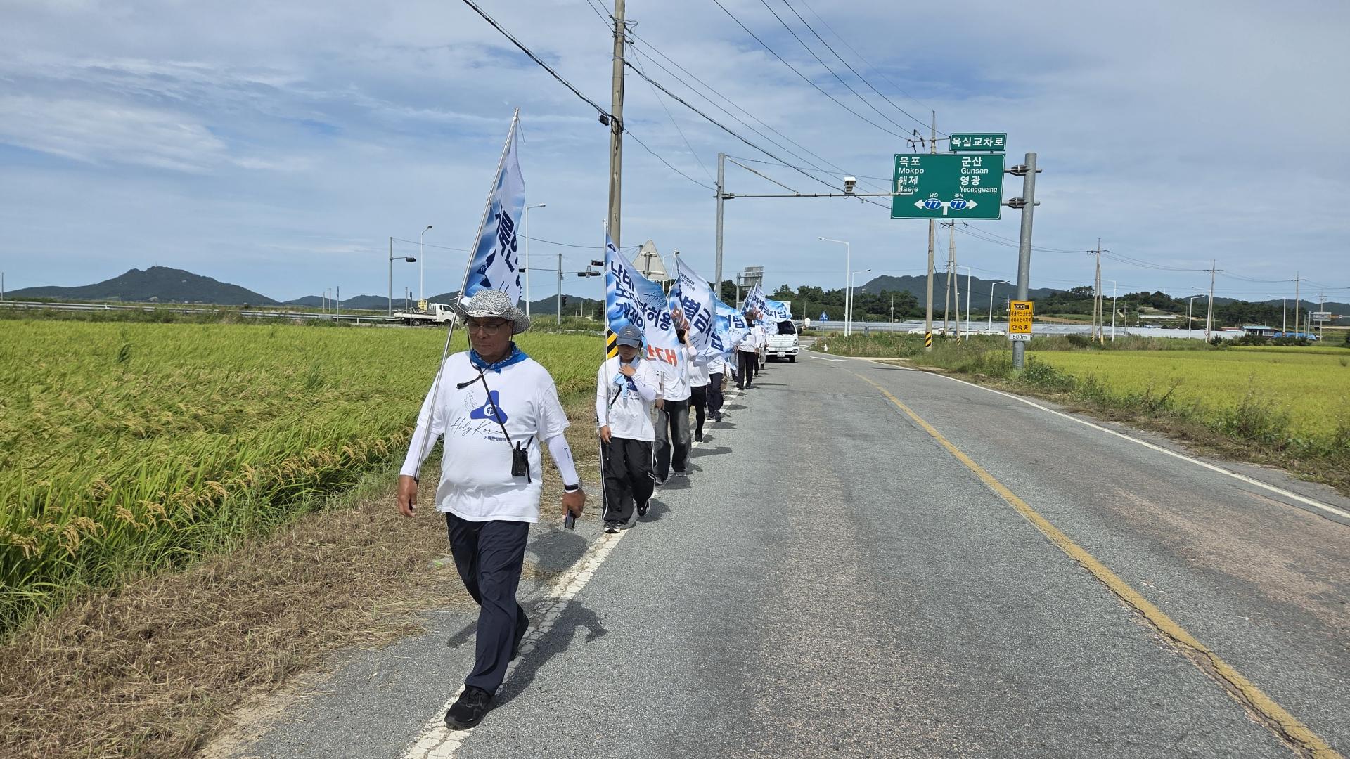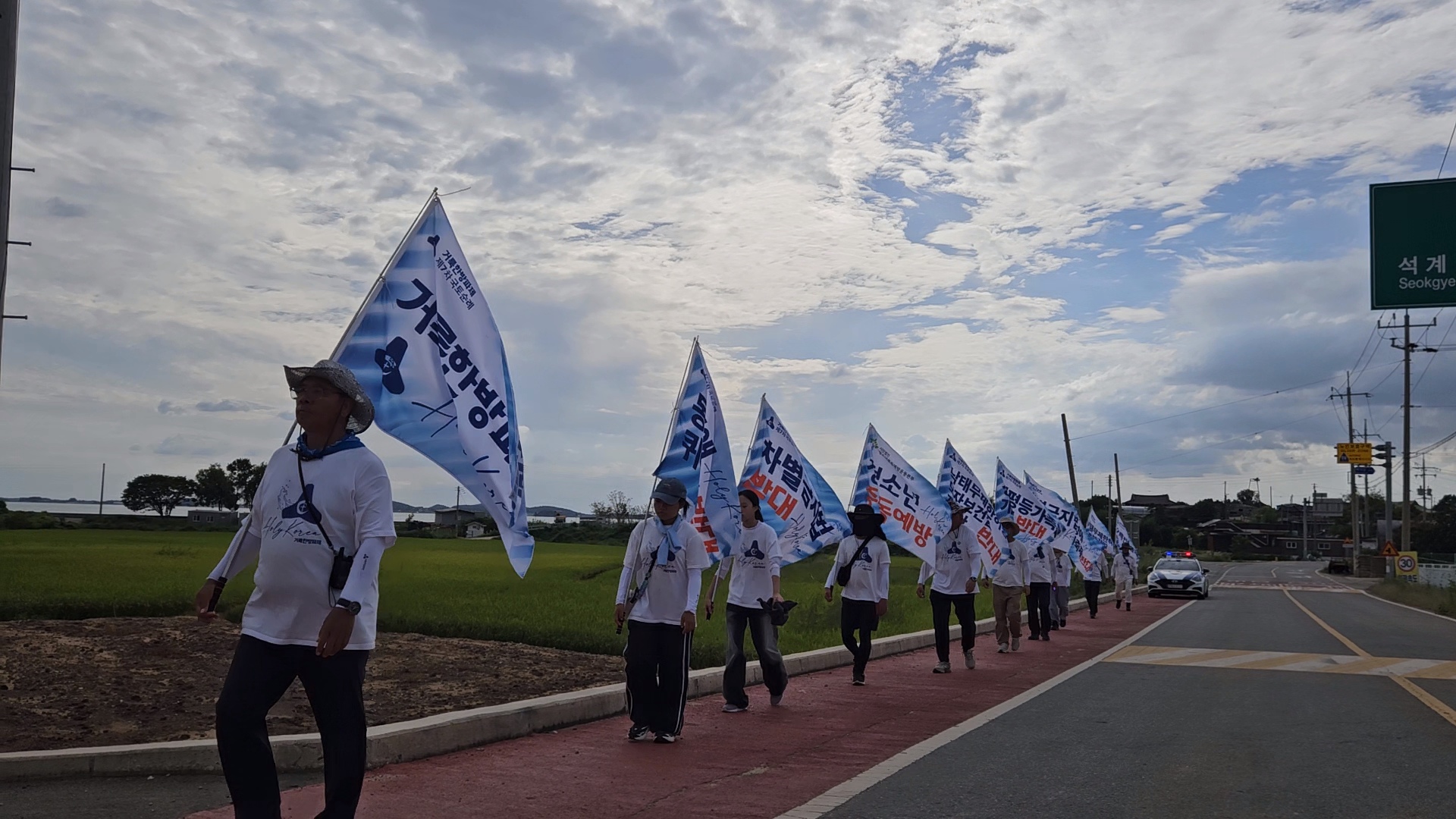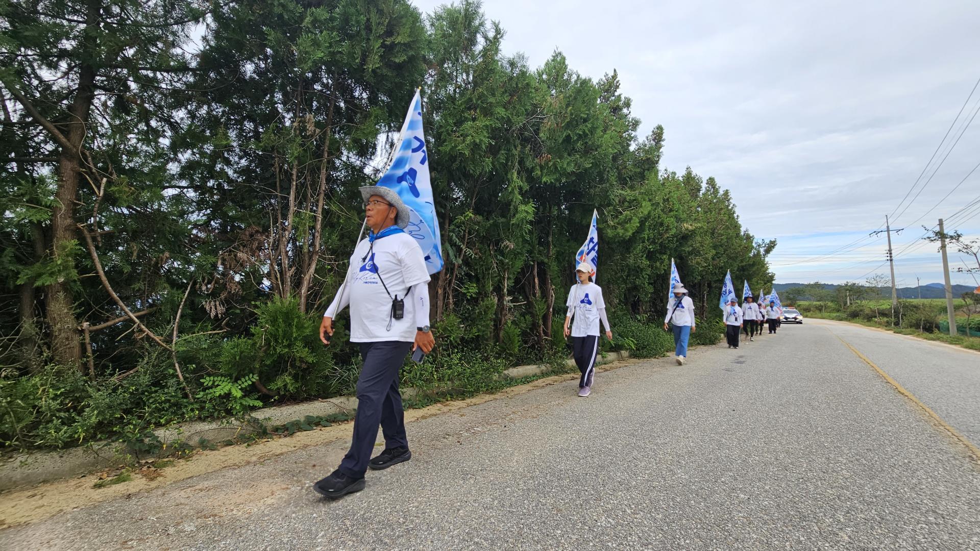 24일차, 엄다교회를 출발하여 무안에 도착해서 89번째 거룩한방파제를 세웠으며 선포식 후 다시 4.3km를 더 전진하여 일정을 마쳤습니다. 89번째 거룩한방파제가 무안 불무공원에서 세워졌습니다.