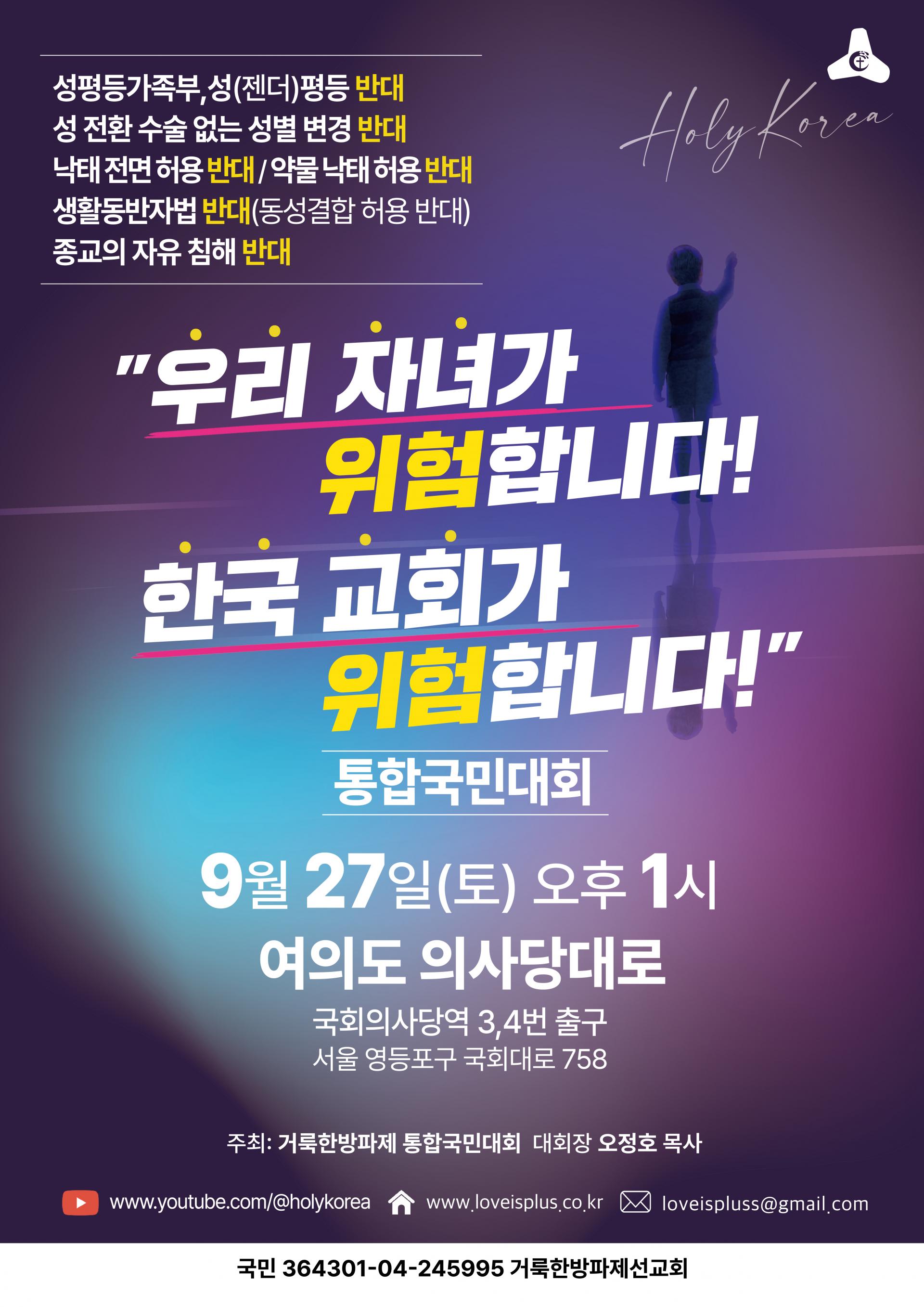 한국 교회와 성도들이 한마음으로 모여 하나님께서 주신 생명, 가정, 신앙의 가치를 지켜나가야 할 때입니다.