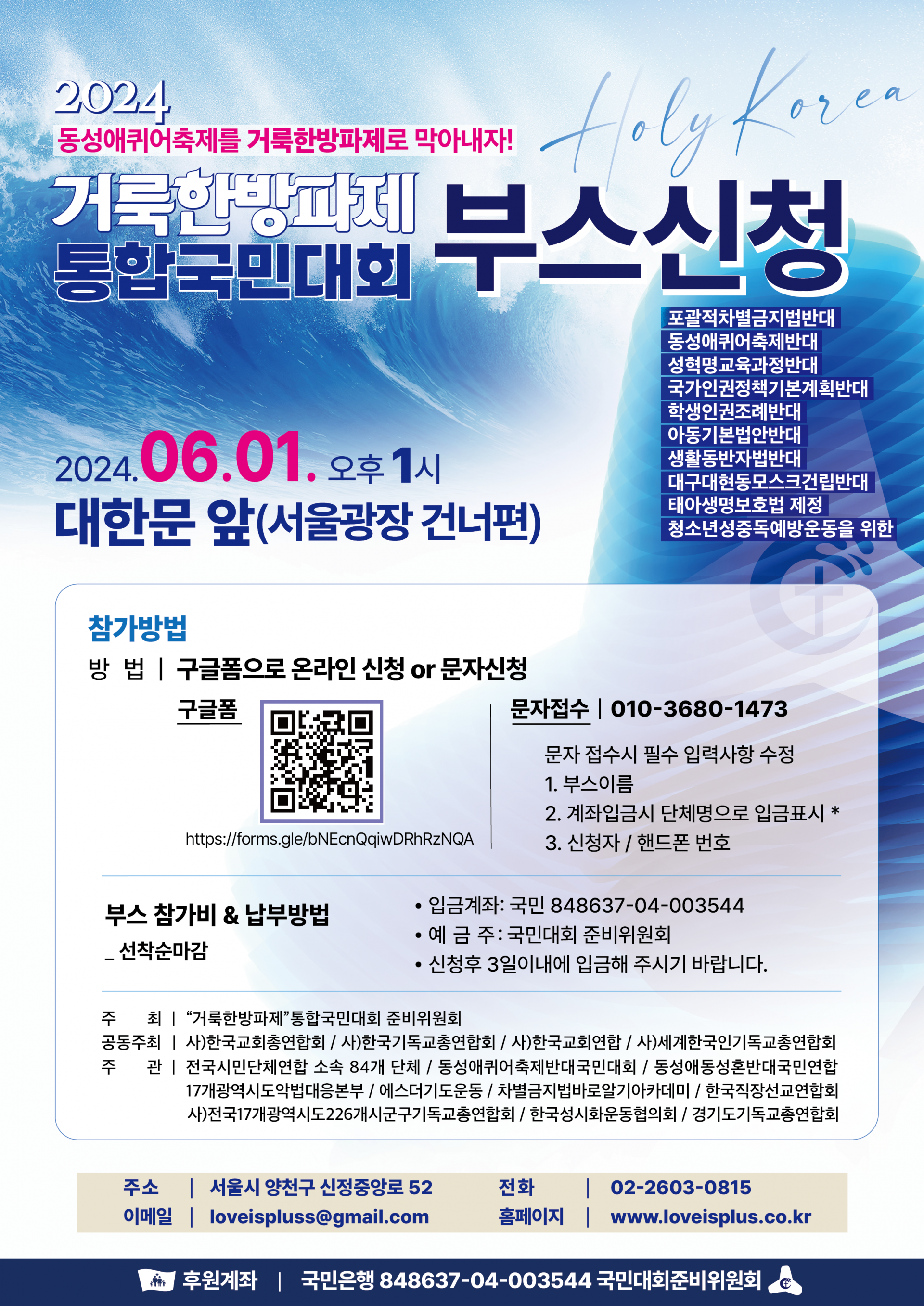 2024 동성애퀴어축제반대 거룩한방파제 부스신청(~5/15까지)