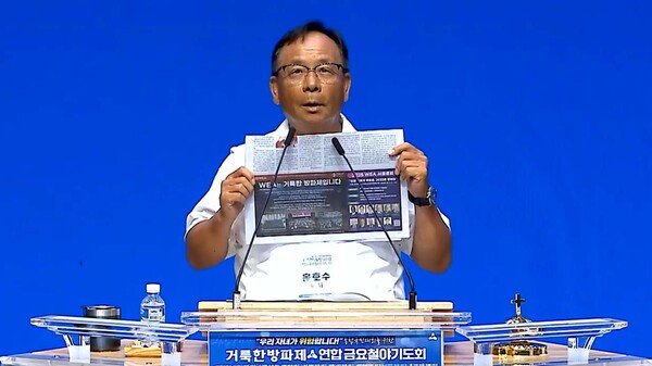 홍 목사는 “광고 게재 이후 항의와 질의가 집행부에 쇄도하고 있으며, 심지어 WEA 홍보 책자에도 ‘거룩한방파제 통합국민대회 보고서’ 내용이 그대로 포함됐다고 들었다”며 “그러나 공식적으로 말씀드린다. 거룩한방파제는 이번 광고와 전혀 관련이 없으며, 우리에게 협의나 문의조차 없었다”고 강조했다. 이어 “적법한 절차를 통해 사과와 재발 방지를 요구할 것이며, 필요하다면 성명서나 별도 광고를 통해 한국교회와 성도들께 사실을 명확히 밝히겠다”고 덧붙였다.
